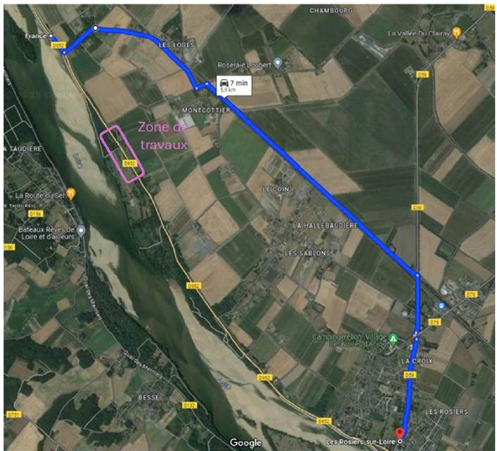 En effet, pour des raisons techniques et administratives, un linéaire d'environ 80 mètres, au niveau de l'île au Cadran, n'a pas pu être traité lors de la première intervention. Ainsi, une seconde phase de travaux est planifiée en septembre pour conforter le talus de la digue côté Loire avant de réaliser l'écran étanche (zone de travaux localisée sur la carte de la déviation locale ci-après).