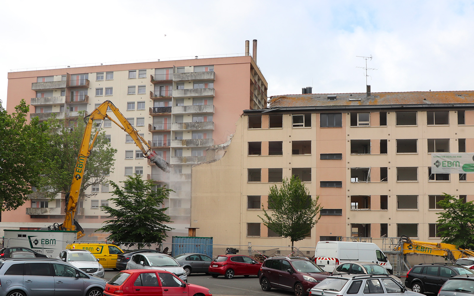 Objectif Chemin-Vert : Les travaux de démolition des logements Schweitzer 161/179 à Saumur ont commencé