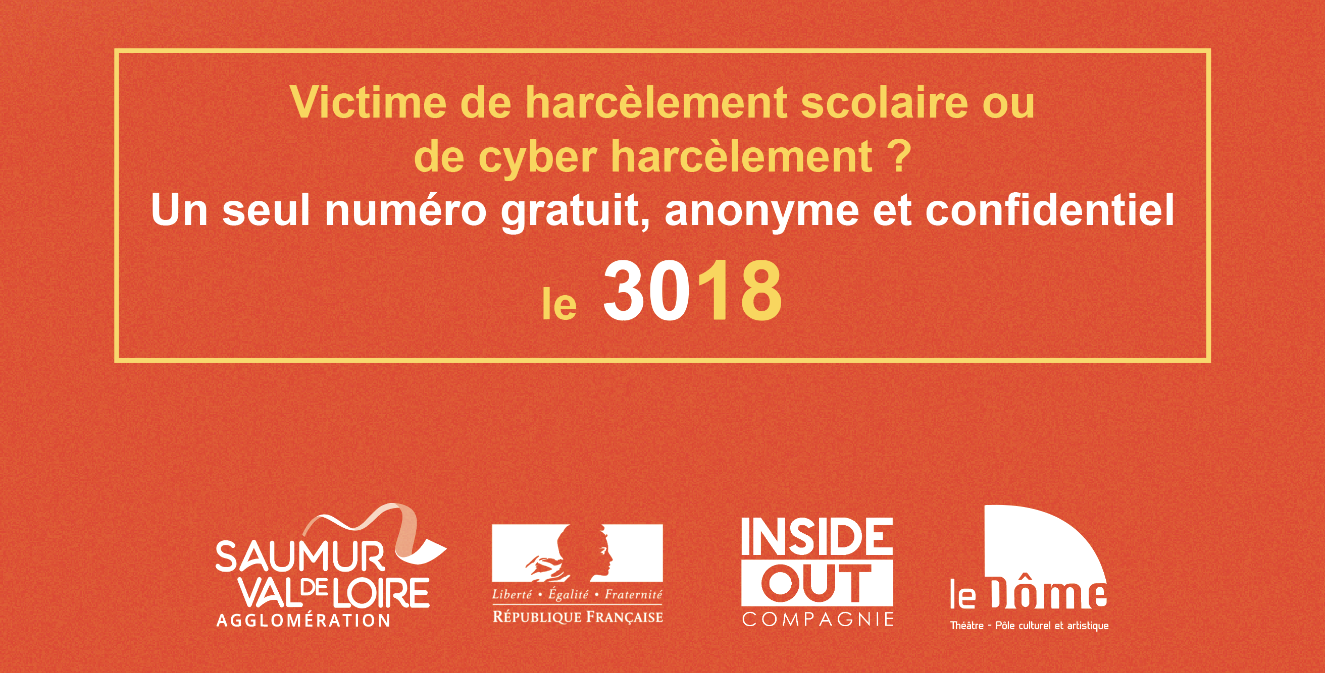 Dans le cadre de ses actions en faveur de la prévention de la délinquance et de son opération « STOP au harcèlement scolaire », la Communauté d’Agglomération Saumur Val de Loire organise un spectacle et une conférence sur le harcèlement scolaire le samedi 30 novembre 2024 à 15h au Théâtre Le Dôme à Saumur.