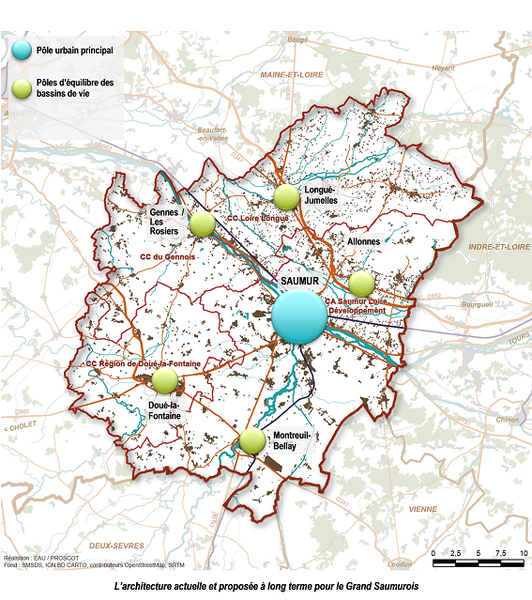Son projet d’aménagement s’organise de manière équilibrée à l’appui du pôle principal Saumur, et des autres pôles d’équilibre Doué-en-Anjou, Montreuil-Bellay, Longué-Jumelles, Gennes-Les Rosiers, et Allonnes. Ces pôles regroupent parfois plusieurs communes dans un même objectif d'équilibre et de cohérence de leur aménagement.